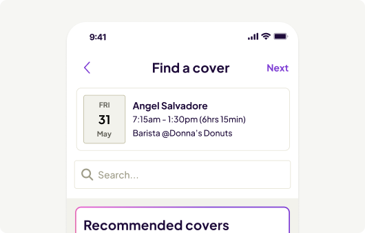 Your team requests coverage directly, or you start cover requests when employees contact you about shifts.