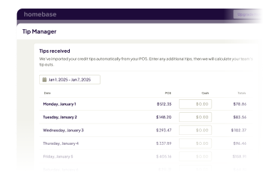 Sync your POS with Homebase to optimize your schedule based on your sales.