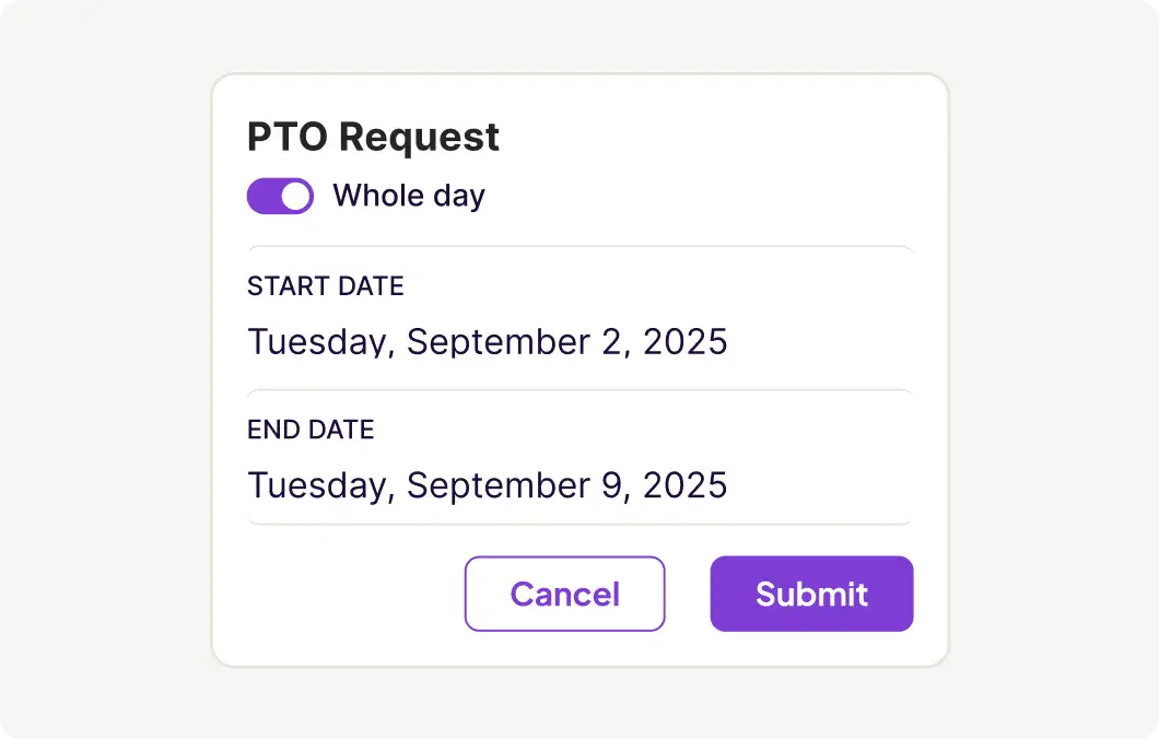 - Real-time PTO tracking shows exactly how much time off they've earned and used, so employees can plan vacations without bugging you.