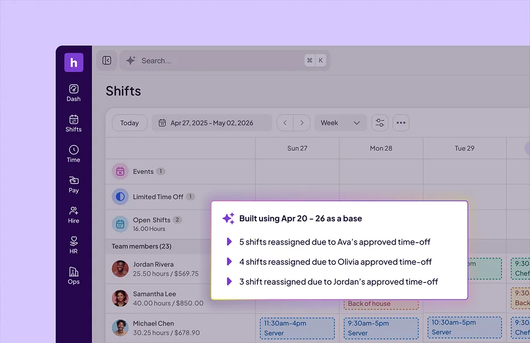 Perfect every shift with AI schedules built around your team’s roles and availability.